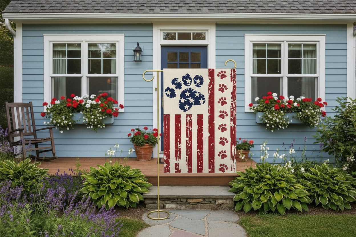 Una bandera de jardín patriótica de poliéster con un vibrante diseño de estrellas y rayas, que mide 12 x 18 pulgadas, adecuada para decoración del hogar, exteriores, patios y jardines.